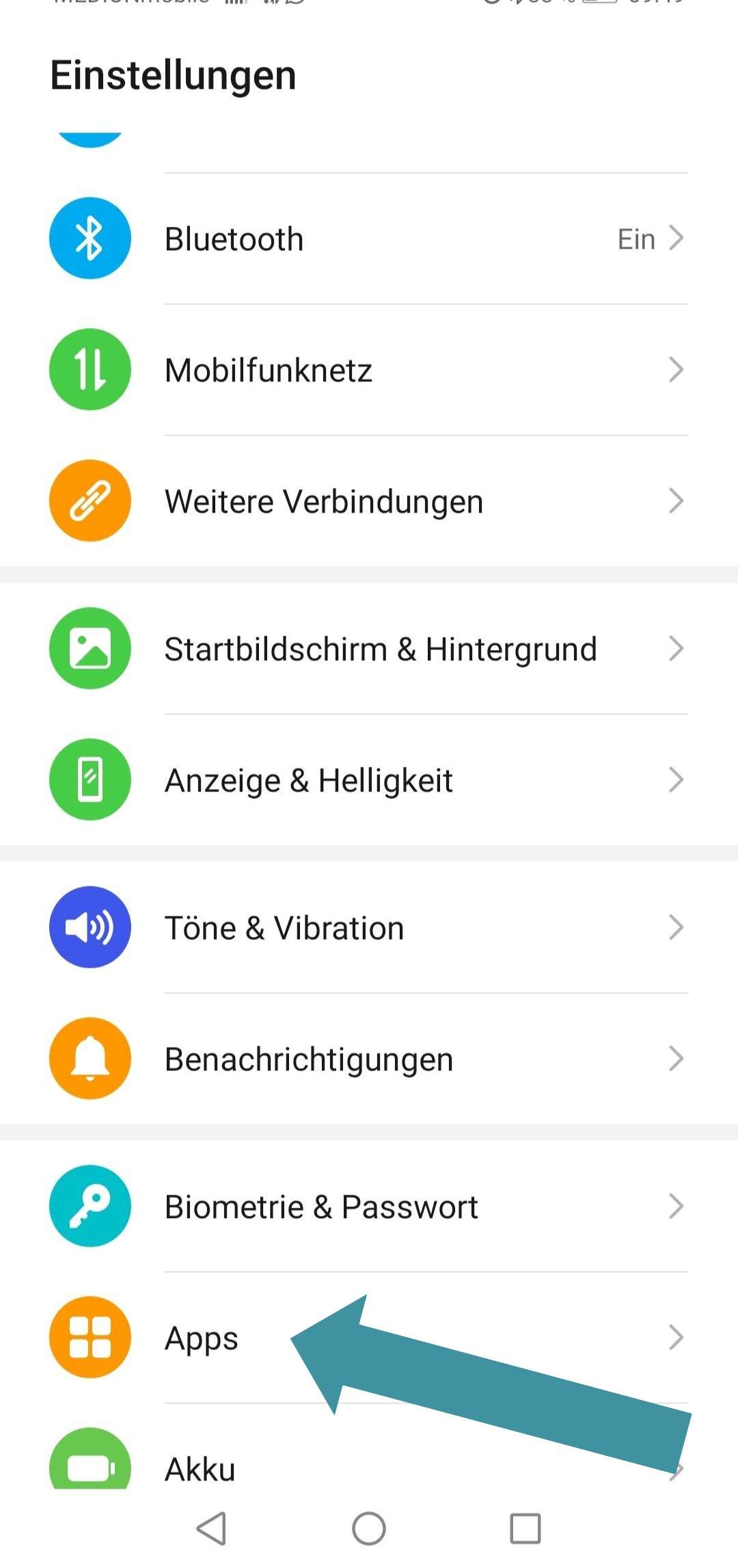 Gehen Sie auf Einstellungen und scrollen Sie nach ganz unten, und tippen Sie auf Apps: