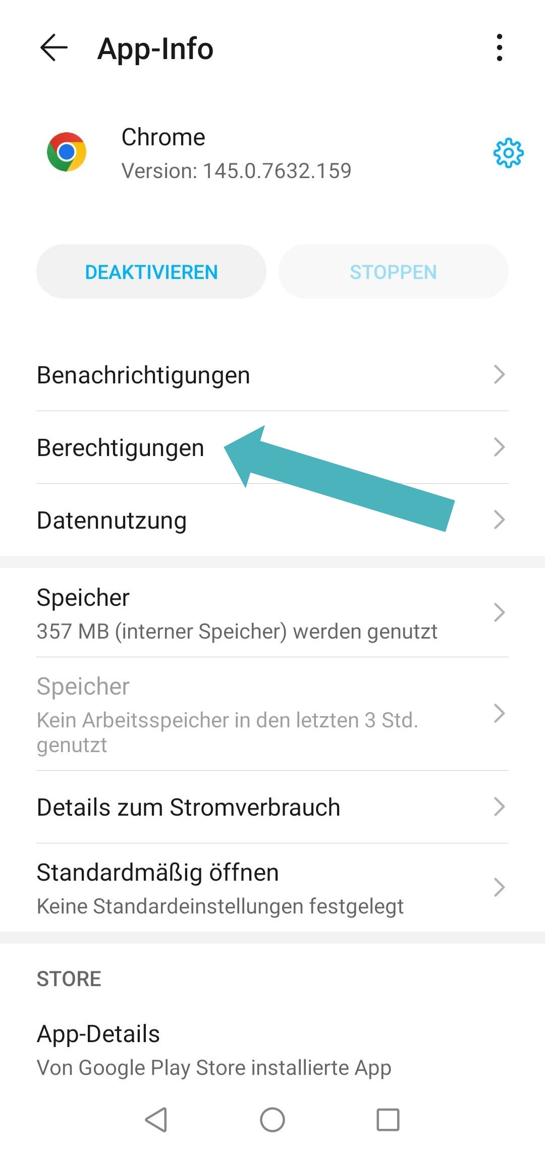 2. Tippen Sie auf Berechtigungen: