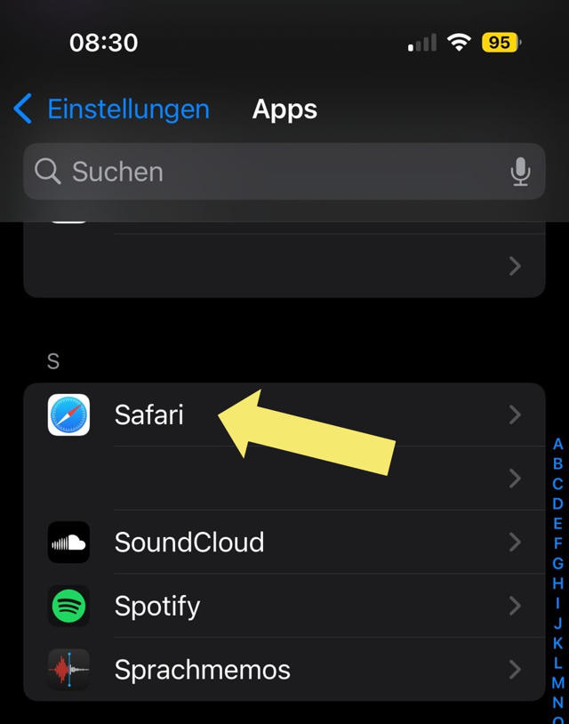 Suchen Sie dort nach Safari und tippen auf Safari:
