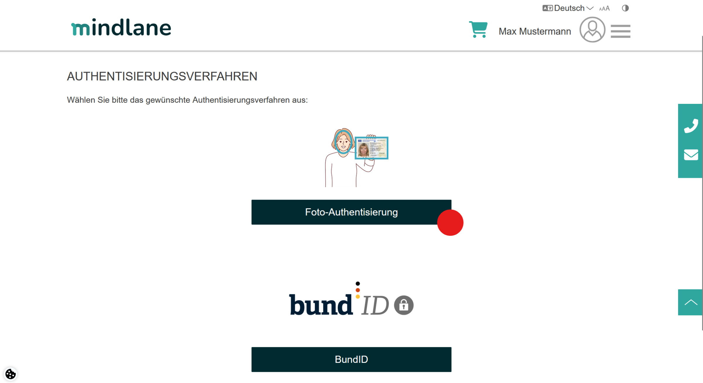 Sollte Ihr Gesundheitsamt die Authentisierung auch über die BundID anbieten, so können Sie alternativ auch diese auswählen.